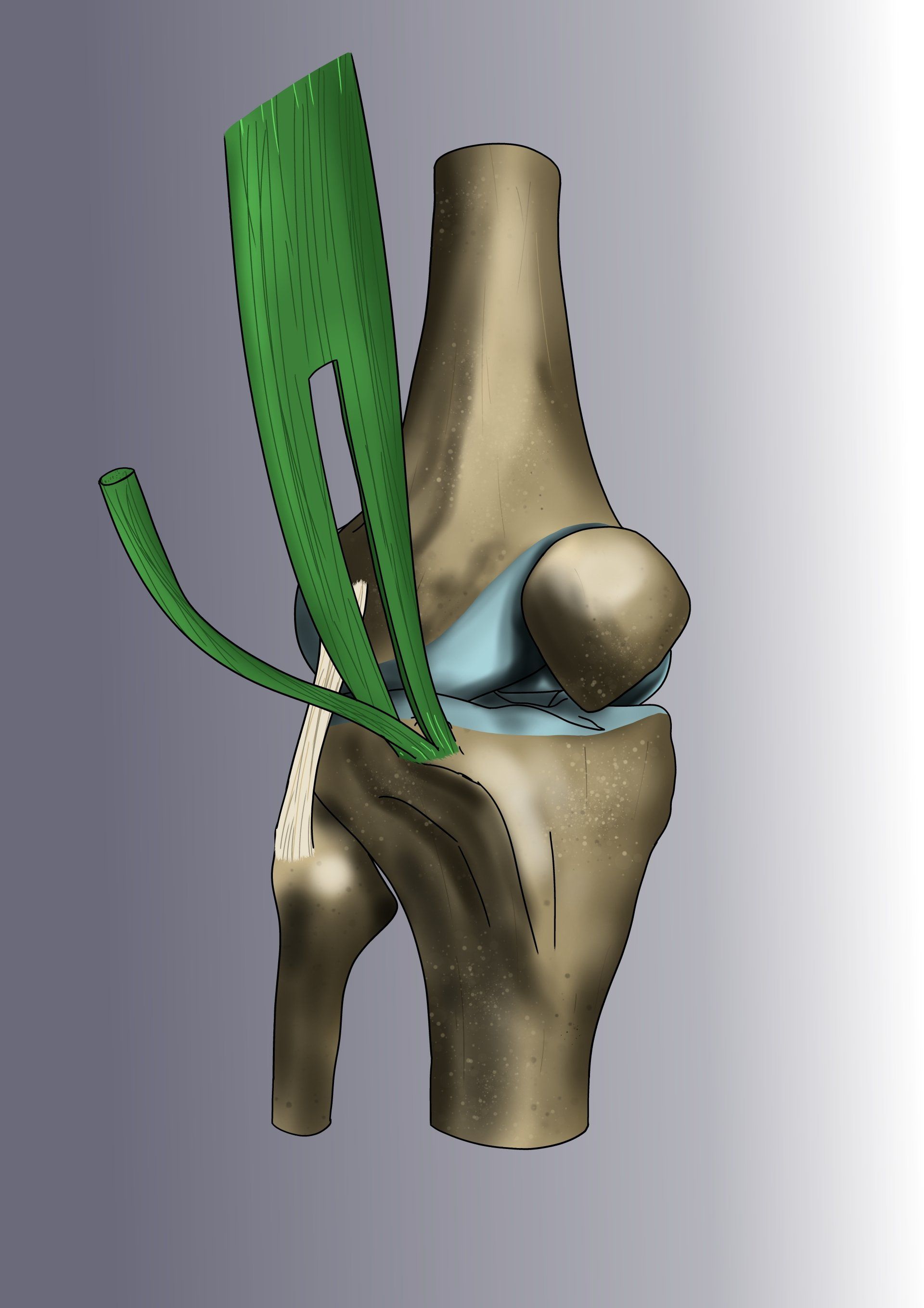 Le KJ sous arthroscopie : améliorée au fil du temps par le Dr Slomka, cette technique de microchirurgie repose sur la technique originelle du Dr Kenneth Jones (ou KJ). La cicatrice se limite souvent de 2 à 5 cm en face antérieure du genou (au lieu des 30 cm d’il y a quelques années).