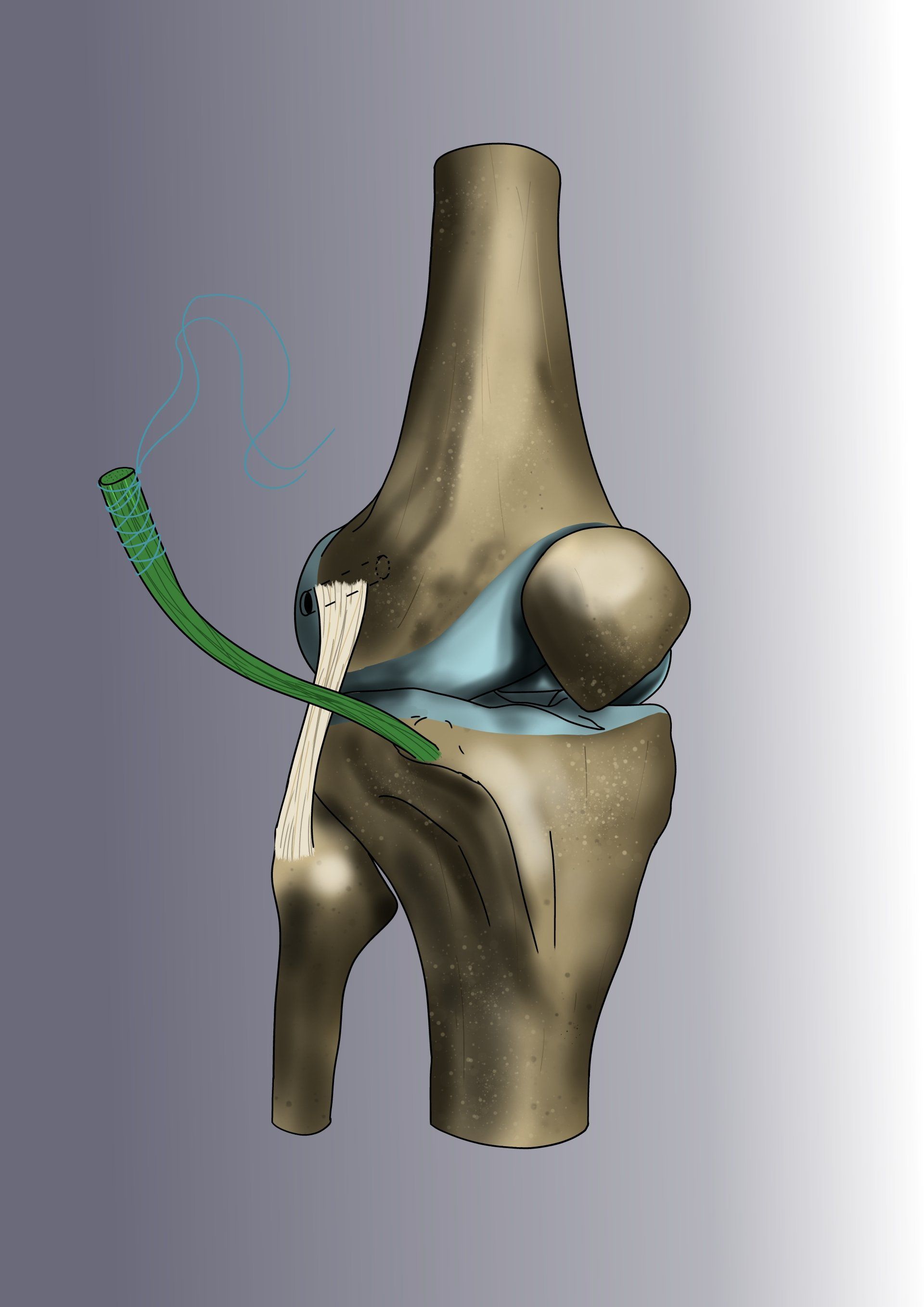 Nous proposons principalement 3 techniques : le KJ (ou technique de Kenneth Jones), le DIDT et le DT 3+2. La technique sera choisie en fonction du patient, de la symptomatologie, mais aussi de sa demande fonctionnelle. Dans tous les cas, d’éventuelles fissures méniscales concomitantes seront traitées dans le même temps. L’opération dure 45 minutes environ sous anesthésie générale ou locorégionale.
